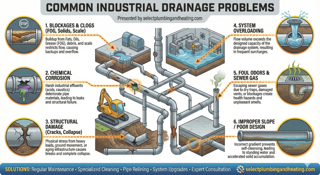 👉 For industrial drainage diagnostics and maintenance across the GTA, contact Select Plumbing and Heating.